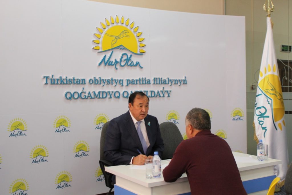 Бүгін «Nur Otan» партиясы Түркістан облыстық филиалының қоғамдық қабылдау бөлмесінде облыстық мәслихаттың хатшысы Қайрат Балабиев тұрғындарды арыз-шағымдары мен өтініштері бойынша қабылдады. Партия филиалына үміт арта келген тұрғындардың бірқатарының мәселесі сол жерде шешімін тапса, тағы бірнешеуіне заң аясында көмек берілетін болды.