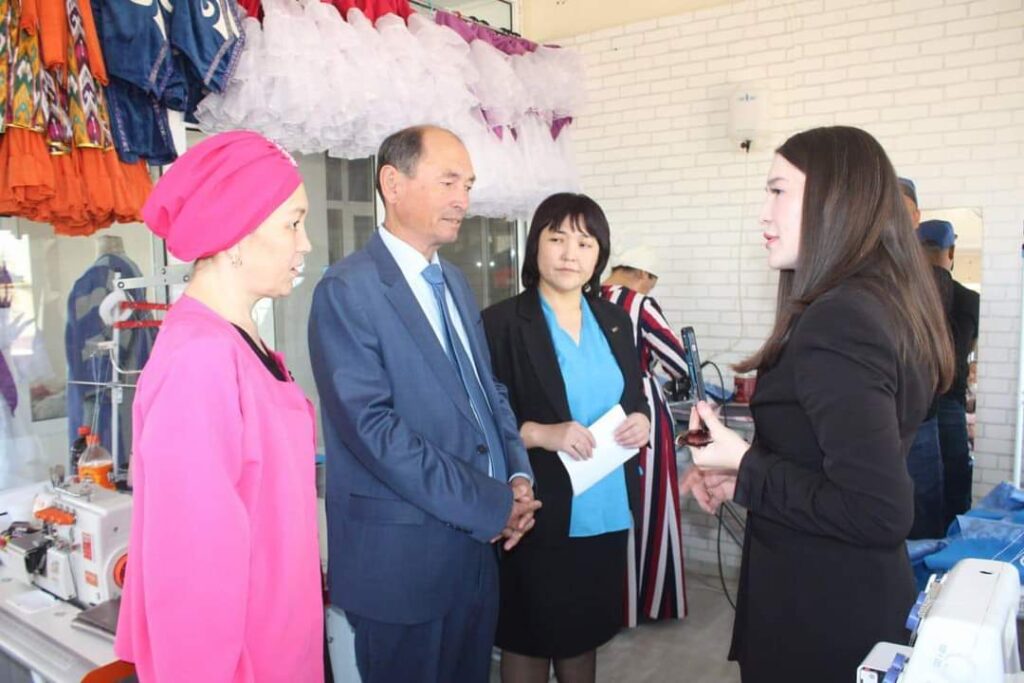 Сапардың келесі нысаны – «Әдемі» ательесі болды. Мұнда «Табысты отбасы» жобасының бірнеше түлегі жұмыс істейді. Әйелдер «Тұсау кесуге» арналған ұлттық киімдерден бастап автобус орындықтарына қажетті қаптарына дейін тігу үшін кез келген тапсырыстарды алады.
