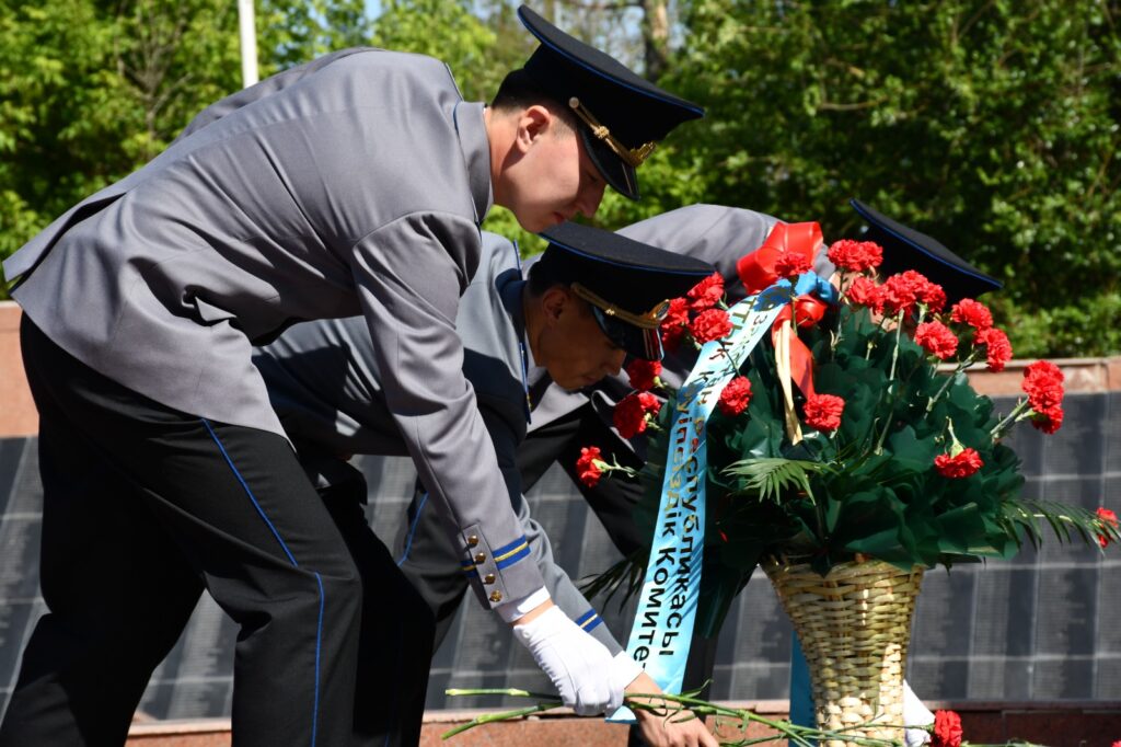 Түркістан қаласындағы Жеңіс саябағында Отан қорғаушылар күні мен Ұлы жеңіс мерекесіне орай шара өтті. Жиынға ҰҚК Түркістан облысы бойынша департаменттің бастығы ұлттық қауіпсіздік генерал-майоры Марат Абдильманов пен басшылық құрам, басқарма басшылары, осы саланың ардагерлері қатысты. Даңқ мемориалына гүл шоқтары қойылып, соғыста шейіт болған ардагерлерді бір минут үнсіздікпен еске алып, рухына тағзым етті.