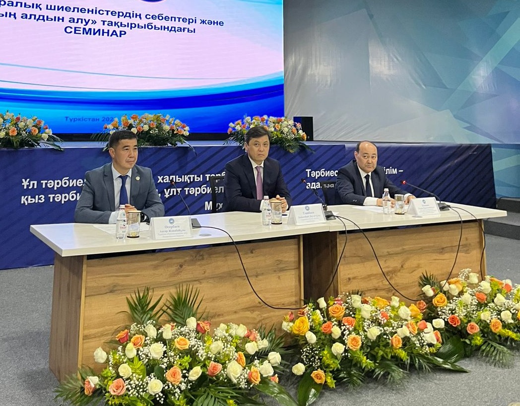 Бүгін Түркістан облыстық қоғамдық даму басқармасы «Қоғамдық келісім» КММ-нің ұйымдастыруымен «Ұлы Дала Елі» орталығында «Этносаралық шиеленістердің шығу себептері және оның алдын алу» тақырыбында семинар өтті. Семинарға Түркістан облысы әкімінің орынбасары Бейсен Тәжібаев модераторлық етіп отырды. Жиынға ҚР Ақпарат және қоғамдық даму министрлігі Этносаралық қатынастарды дамыту комитетінің төрағасы Ғалым Шойкин, Түркістан облысы қоғамдық даму басқармасының басшысы Аңсар Өсербаев қатысты.