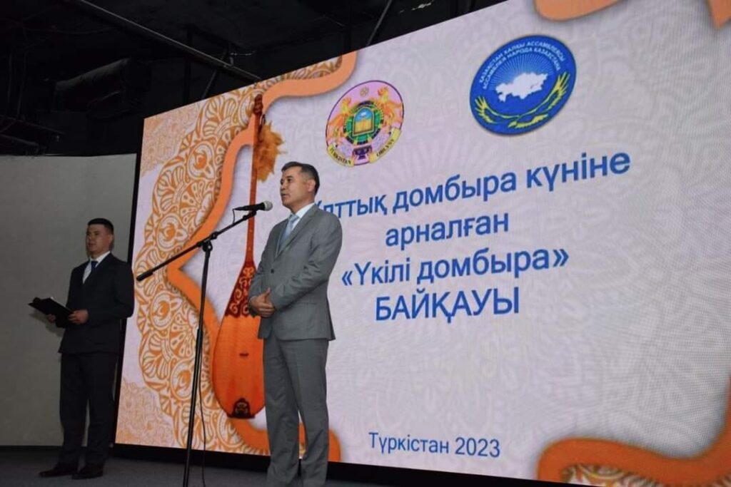 Түркістандағы “Ұлы Дала Елі” орталығында облыстық қоғамдық даму басқармасы “Қоғамдық келісім” КММ-нің ұйымдастыруымен этнос өкілдері арасында “Ұлттық домбыра” күні мен Түркістан облысының құрылғанына 5 жыл толуына орай тұңғыш рет “Үкілі домбыра” байқауы өтті.