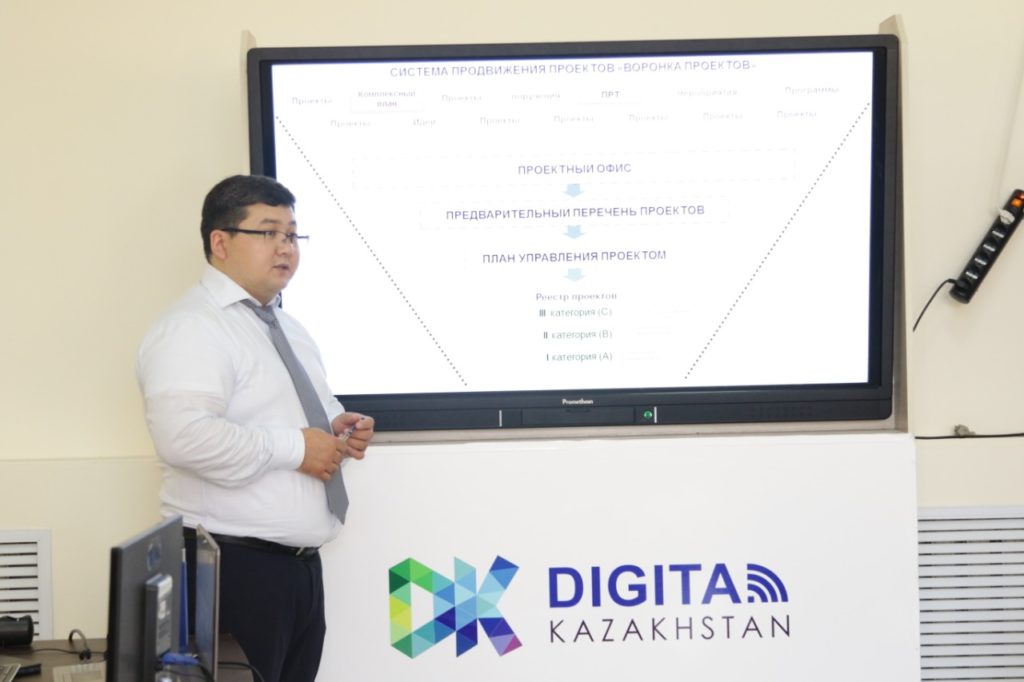- Жоғарыда айтқанымдай, Жобалық кеңсе шеңберінде 1500-ге жуық жоба біздің тікелей бақылауымызда. Қазіргі таңда өзіміздің нормативтік базамыз (Облыс әкімінің Жобалық кеңсе жайлы өкімімен) құрылған. Аталмыш өкім шеңберінде, ережеге сәйкес жұмыстар атқарылуда. Халықпен тығыз қарым-қатынас орнату аясында әлеуметтік желідегі парақшалар ашылып, жиі ақпарат жарияланады. Алдағы уақытта Жобалық кеңсе сайтын құру жоспарда бар. Айта кету керек, Түркістан және Кентау қалаларында пилоттық режимде біздің кеңсеге сәйкес кішігірім кеңселер ашып, Жобалық менеджмент қағидалары, ұстанымдары жайлы түсіндіру үшін 188 азаматқа тренинг, дәріс өткіздік. Әртүрлі деңгейдегі облыс, аудан мамандары әкімнен бастап қарапайым сарапшыға дейін осы оқу-дәрісінен өтуде. Жыл соңына дейін оқу-дәрісінен өткен мамандар санын көбейтеміз. Біз толығымен Жобаларды басқару ақпараттық жүйесінде жұмыс істейміз, ол – «Easy Project»деп аталады. Аталмыш бағдарламада онлайн режимде жобаларды бақылап, мониторинг жасауға болады. Бұл бағдарламамен кез келген маман ұялы телефон, планшет, ноутбук және тағы да басқа құрылғылар арқылы кіріп, өз жобасын бақылап, тиісті өзгерістер енгізіп, жұмыс барысын реттей алады. Аталмыш бағдарламамен жұмыс істеу өте оңтайлы.