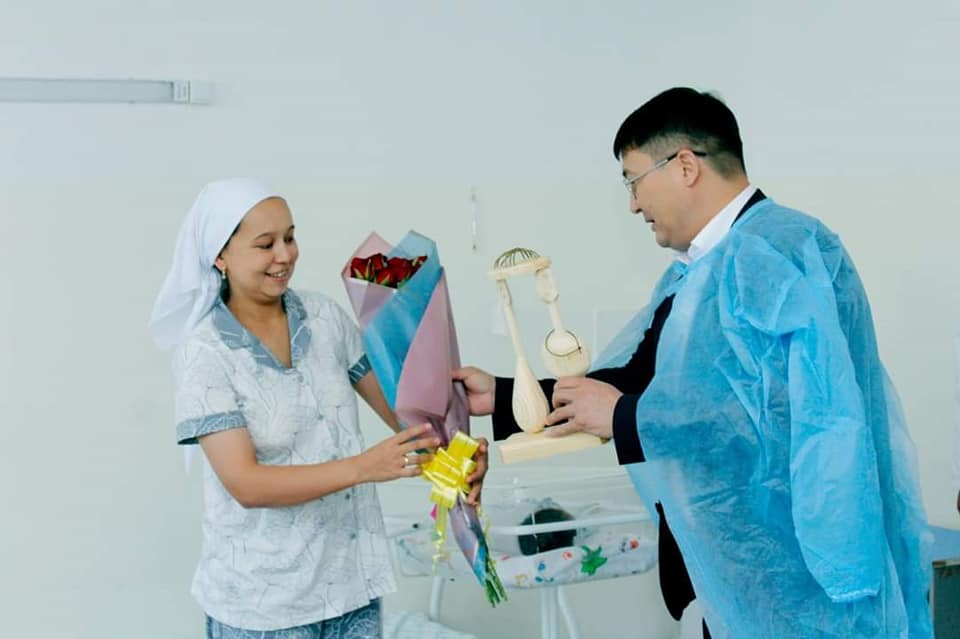 Ұлттық домбыра күні мерекесінде аудан әкімі Азизхан Исмаилов аудандық перзентханаға арнайы барып, жас аналармен кездесті.