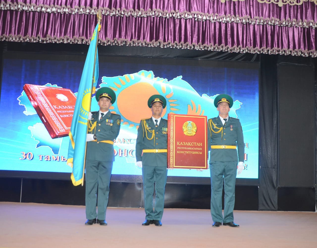 «Біз аз уақытта айбары асқан қуатты ұлтқа, дәулеті тасқан әлеуметті елге айналдық. Ортақ шаңырағымыздың шекарасын шегелеп, іргемізді мызғымастай етіп бекіттік. Тағдыр тоғыстырған, тарих табыстырған түрлі ұлт өкілдері Конституция қағидаттары төңірегіне топтасты. Еуразияның жүрегіне орналасқан Елордамыз әлемге руханияттың ірі орталығы, саясаттың іргелі ордасы ретінде танылды. Кез-келген мемлекеттің, елдің тәуелсіздігін, демократиялық құндылықтарын айқындайтын негізгі құжат – Конституция. Осыдан 28 жыл бұрын, 30-тамызда Қазақстан халқы тарихи шешім қабылдап, еліміздің құқықтық өміріндегі жасампаз жаңа дәуіріне қадам басқан еді. Содан бері қарай тәуелсіздігіміздің тірегіне айналған Ата заң – мемлекет пен қоғамда орын алып отырған барлық саяси-экономикалық, әлеуметтік реформалардың ілгері басуына, дамудың қайнар бастауына айналды» деген аудан әкімі Серік Үсенұлы Мамытов жиналғандарды айтулы мерекемен құттықтады. Салтанатты құттықтаудан кейін елдің әдеуметтік-экономикалық дамуына сүбелі үлес қосып, қажырлы еңбек етіп жүрген азаматтарды алғыс хаттармен марапаттады. Сый-сияпат жасады.