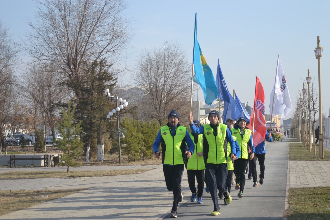 Бүкіл қазақ қана емес түркі әлемі құрмет тұтқан Түркістан топырағы марафоншыларды зор қошеметпен қарсы алуда. Спортты жанындай сүйген азаматтар алдымызда тұр. Бүгінгі бұл азаматтардың әр аяқ басысы, әр қадамы, әр тынысы Тәуелсіздік үшін жасалып отқан жақсы қадамдар. Спортпен айналысқан адам біріншіден сұлу, екіншіден дені мықты, үшіншіден басқаларға үлгі болады. Сонау Нұр-Сұлтаннан Қарағандыны артқа тастап, Қызылорданы бойлап, Жаңақорған арқылы киелі Түркістанға жетіп отыр. Қадамдарыңыз құтты болсын,- деді Түркістан облысы филиалы төрағасының орынбасары Қалима Жантөреева