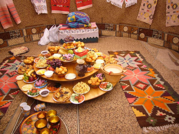 Баяғы заманнан бері осы күнге дейін жеткен дәстүріміздің бірі мен бірегейі – келген қонаққа дастархан жаю. Бұл дәстүр тек қонақжай қазақ халқына ғана тән дүние десем, артық айтпаспыз, себебі үйге қандай кісі келсін «ең болмаса нан ауыз тиіп кету керек» деген ұғым санамызда бала кезімізден қалыптасқан. Қазағым қашан да бар асылын, бар тәттісін «қонақ жесін» деп сақтаған. Қазақ халқы үшін дастарханнан үлкен, дәмнен үлкен нәрсе жоқ. Ақсақалдар да үнемі «Дастархан тек қуанышты себептермен жайылсын! Дастархан мол болсын! Осындай үлкен дастархан басында жинала берейік!» деп бата беріп, тілектерін айтып жатады. Дастарханға алғаш қойылатын ас бұл – нан. Дастархан жайғанда міндетті түрде ең алдымен нан қойылады. «Ас атасы – нан» деген мақал осыдан шықса керек. Ұннан жасалынған тағамдар бағзыданақ дастарханымыздың сәні болып келген. Қазақ өзінің шаңырағындағы кез келген жиында дастархан үстінен нанды алыстатпайды. Сыйлы қонақ келсе, бұрынғы кезде мал сойылып, ет асылса, қазіргі заманда мал сойылмаса да, қазанды отқа қойып, қонақтың кәдесін асып береді. Күн демей, түн демей қазан асуға келгенде қарап қалмайтын қазақ аналары мен келіндері ет тамақты нақышын келтіріп дайындайды. Бүгіндері қырық күн тойын, отыз күн ойын жасамасақ та, кез келген жиында осы ас бірінші мәзірде тұрады. Жалпы алғанда, қазақтың дастарханы – киелі нәрсе. Бұл тек жайылған шүберек немесе оған қойған ас-ауқат қана емес, бұл – адамның пейілі, ішкі жан-дүниесі, мейірім-шапағаты. Қазақ халқы дастарханға аса мәнмаңыз береді. Дастархан басында бірінші үлкендер жайғасады, содан кейін барып жасы кішілер орналасады. Дастарханқа қатысты «дастарханды аттама», «дастарханды баспа», «дастарханды пышақпен қырма», «аc қайырмай дастарханнан тұрмасын» деген мақалдар ел арасында кеңінен таралған. Бұл дастарханның киелігін білдіретіні сөзсіз. Дастархан сөзі қашан шықты, қай заманнан қолданыста келе жатыр деген сұраққа тоқталайық. Дастарханның жалпы анықтамасы ол – ас қоюға арналған мата төсеніш. Дастарханды кейде теріден, бөз, шыт, жібек тәрізді маталардан тігілген, «асжаулық» деп те атайды. Дастархан сол үшін көбінесе ашық түсті не гүлді маталардан көлемі әртүрлі етіп тігіледі. Дастарханның жиегін қайырып сыриды, сәнді болуы үшін шашақ тағады. Қазіргі кезде көбіне кленкадан жасалған дастархан пайдаланылады. Байырғы ортада қымбат жібек түрлерінен сәндеп, құрақ құрағандай етіп шетін кестелеп, өрнектеп тіккен, көбінесе, жиектері кестеленіп, шашақталып сәнді жасалған. Дастархан үстіне бауырсақ, құрт-ірімшік сияқты тағамдар төгіліп, май, жент, өрікмейіз сынды тағамдар тостаған, кесе сияқты арнайы ыдыстарға салынып қойылады. Дастарханды уақытша жинау қажет болса, ыдыстағы сүт, май сияқты төгілетін сұйық тағамдарды жинап алғаннан кейін, бауырсақ, құртірімшіктерін жинақтап, төрт шетінен түйіп, буып қояды. Ал астарқанды жимаған жағдайда асқа, дәмге зиянкес күш иелері қонақтап қояды деген түсінікпен оны көлемі дастарханға бара-бар матамен бетін жауып қояды. Дастархан – бұл не? Бұл ұғым алғашында Шығыс халықтарының дастарханы деп аталды. Әдетте оның төртбұрышты, сирек дөңгелек формасы болады. Оның биіктігі 30 см.Сондай дастархан басында тек түрік тілінде отыруға болатыны анық. Бірақ едендер әрдайым жылы бола бермейді. Адамдар бұл мәселені өздері отырып, қонақтарды жұмсақ ж