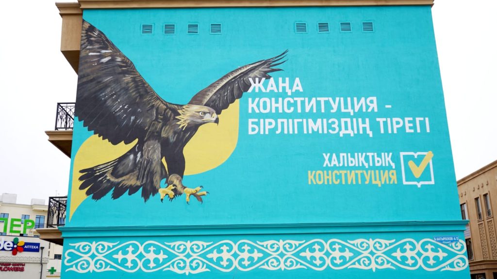 Түркістан қаласында Конституциялық реформаны қолдау мақсатында ауқымды әрі мазмұнды іс-шара өтті. Қаланың басты туристік орталықтарының бірі – Керуен сарай кешені аумағындағы тұрғын үйдің қасбетіне кәсіпкерлердің жеке қаражаты есебінен арнайы Конституциялық мурал салынды.