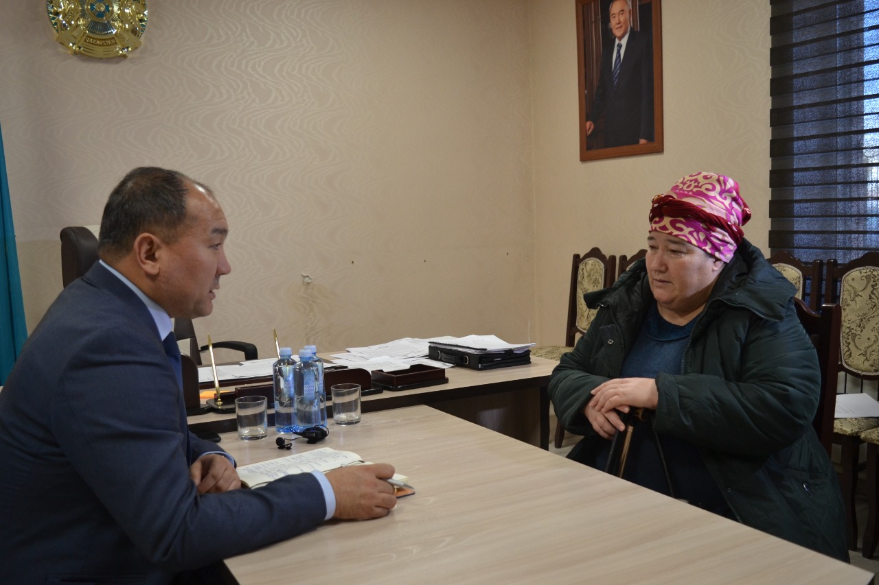 Басшының есігін қағып әуелі Махсуда Нұрмаханбетова есімді көпбалалы ана келді. Айтуы бойынша, «Отырар» мөлтек ауданынан 2016 жылы үй сатып алған. Қызын, немерелерін сол үйге тіркеуге қою үшін көмек сұрап келген. Қабылдау барысында, берілген жауаптар көңілінен шығып, қанағаттанғандығын жеткізді.