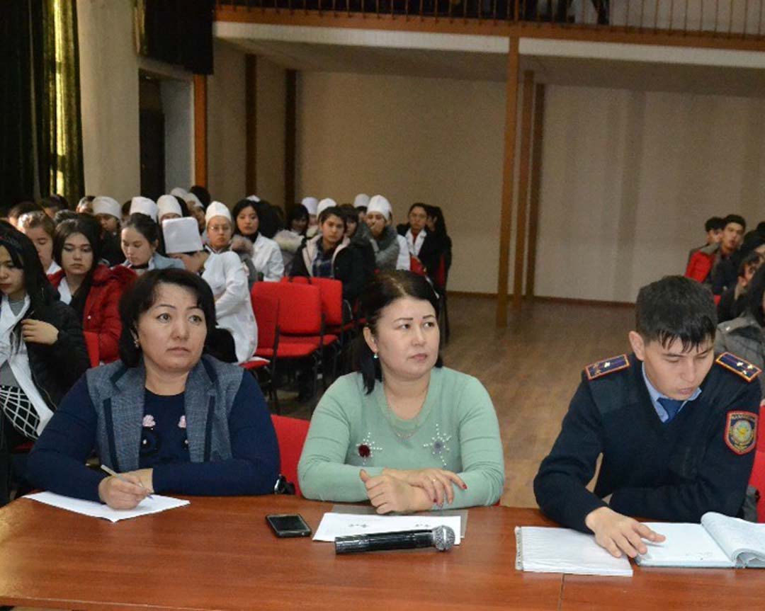 Түркістан көпсалалы жоғары медицина колледжінде «Жастар ресурстық орталығы» КММ-нің әлеуметтік психологиялық сүйемелдеу секторының ұйымдастыруымен «Қылмыссыз болашақ» атты тақырыбында студент жастармен кездесу өтті.