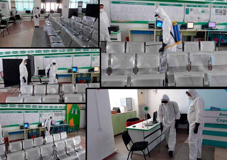 ҚР Денсаулық сақтау министрлігі тауарлар мен қызметтердің сапасы мен қауіпсіздігін бақылау комитетінің «Қазақстан Республикасында короновирустық инфекцияның тіркелуі мен таралуына жол бермеу жөніндегі шараларды күшейту және халықтың өмірі мен денсаулығын сақтау, әкелуге жол бермеу туралы» ҚР Бас мемлекеттік санитарлық дәрігерінің қаулысын орындау мақсатында, дезинфекциялық тазалық жұмыстары өз деңгейінде жүргізіліп келеді.