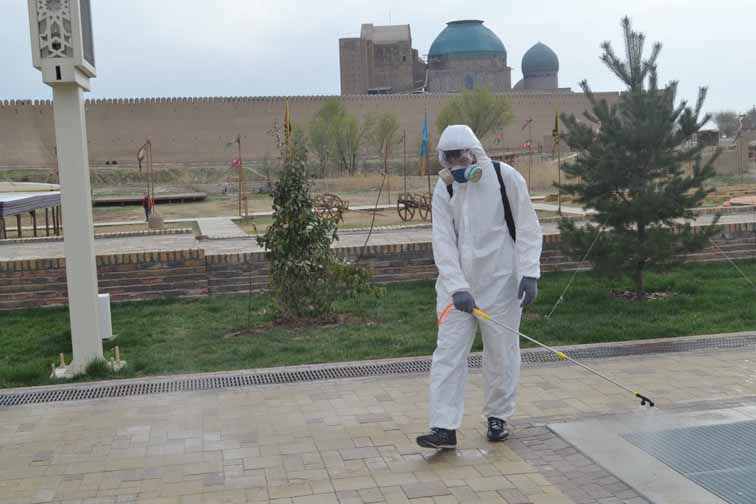 Туркистон шаҳри ҳокимининг ўринбосари Тажибек Мусаевнинг иштироки билан дезинфекция ишлари олиб борилди. Дезинфекция ишлари шаҳар ветеринария хизмати хўжалик юритиш ҳуқуқи ДКК мутахассислари иштирокида ўтди.