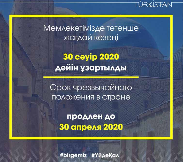 Довожу до вашего сведения, что решением Главы государства срок чрезвычайного положения в стране продлен до 30 апреля 2020 года.