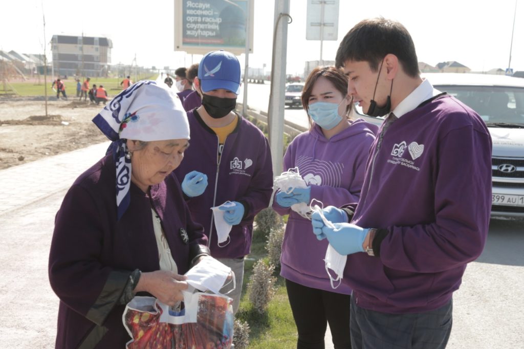 Вместе с тем, усилиями волонтеров в местах общественных местах, детских домах, блокпостах, школах-интернатах была проведена информационно-разъяснительная работа о мерах предосторожности против коронавирусной инфекции, бесплатно роздано 60 655 защитных масок и более 10000 памяток с инструкцией по соблюдению чистоты и проведению дезинфекции в общественных местах. Более того, 3282 продовольственных корзин раздали волонтеры малообеспеченным и многодетным семьям.